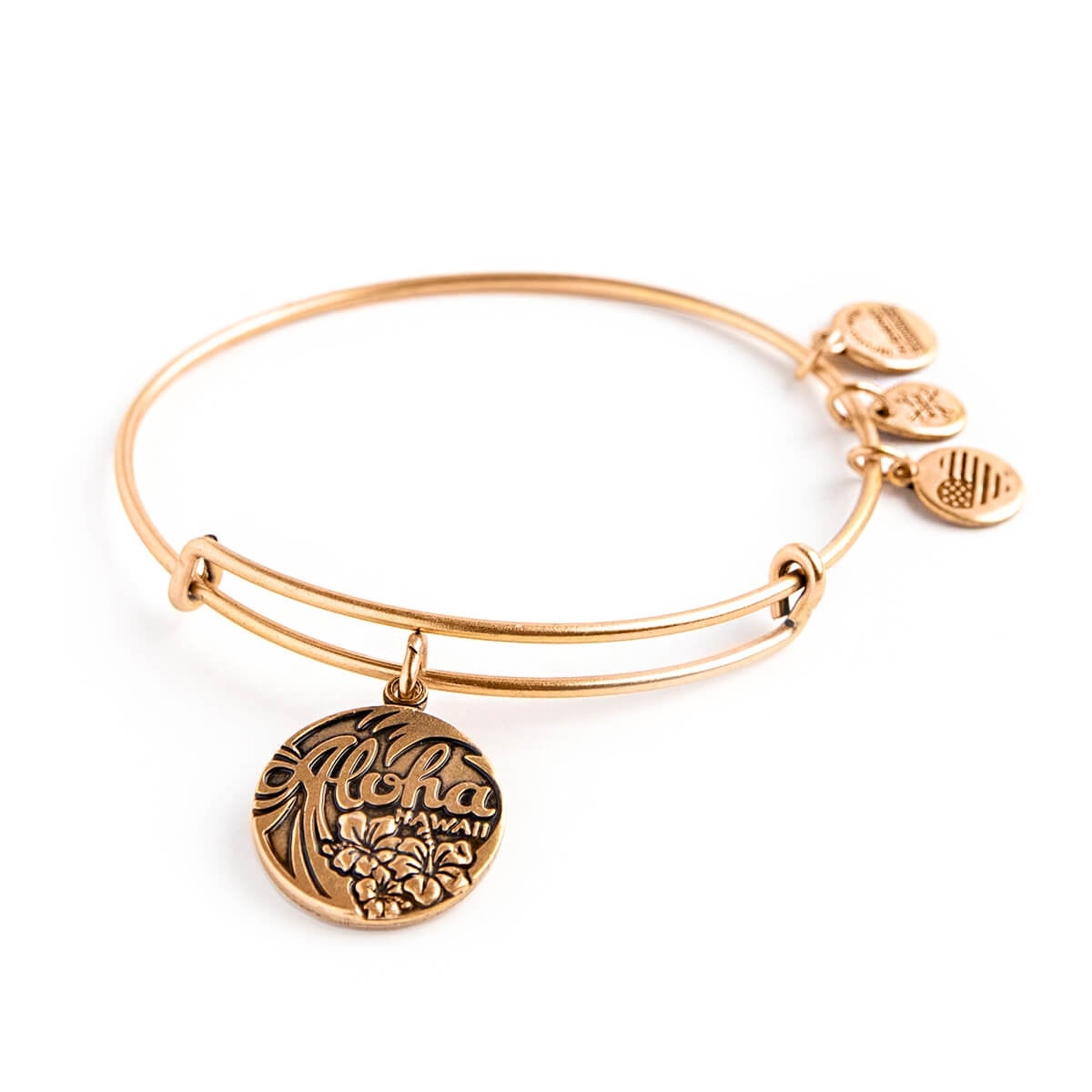 Aloha means hello and goodbye, and also means great love. Remember your time in the Aloha State with this Charm Bangle.