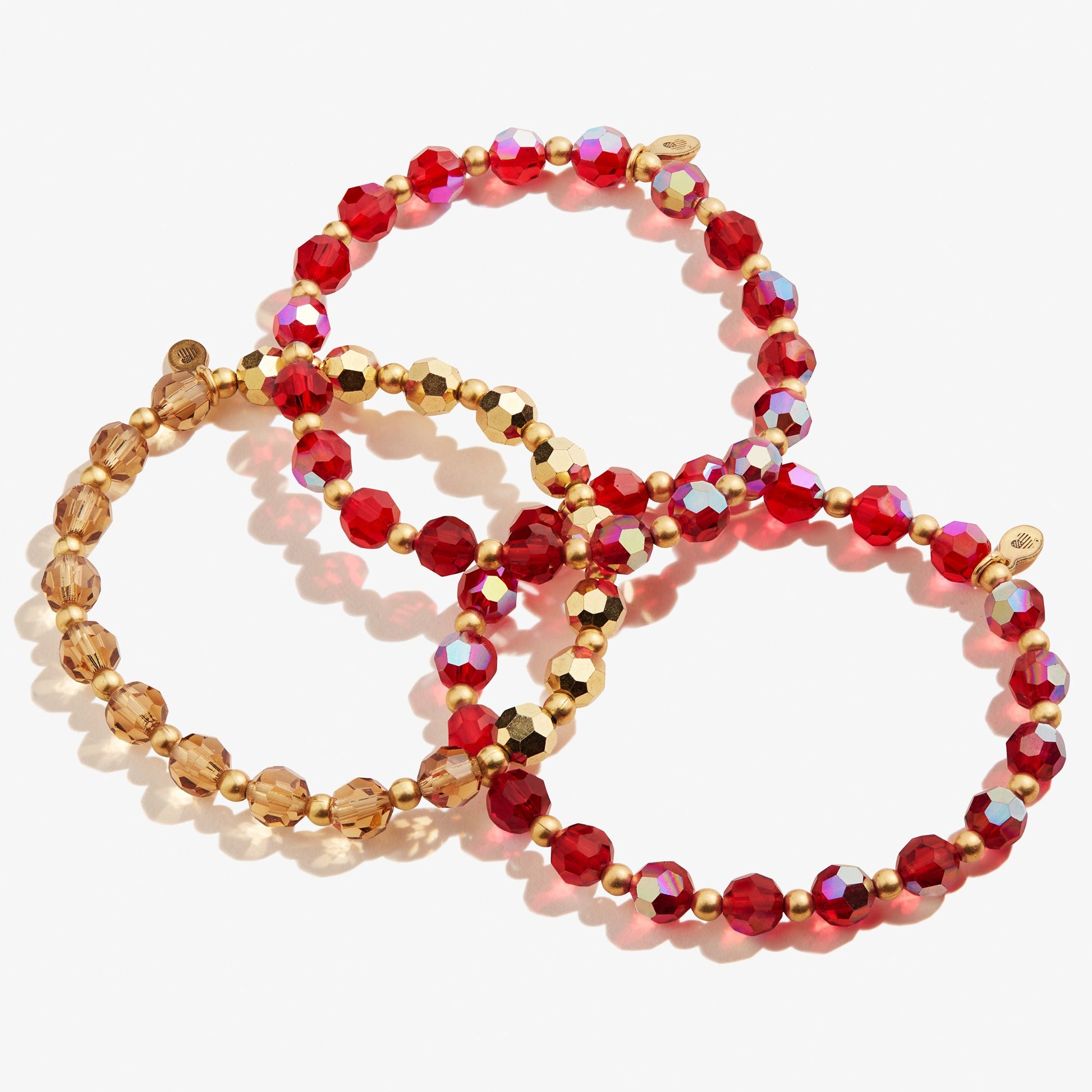 Burgundy Crystal Stretch Bracelets, Set of 3