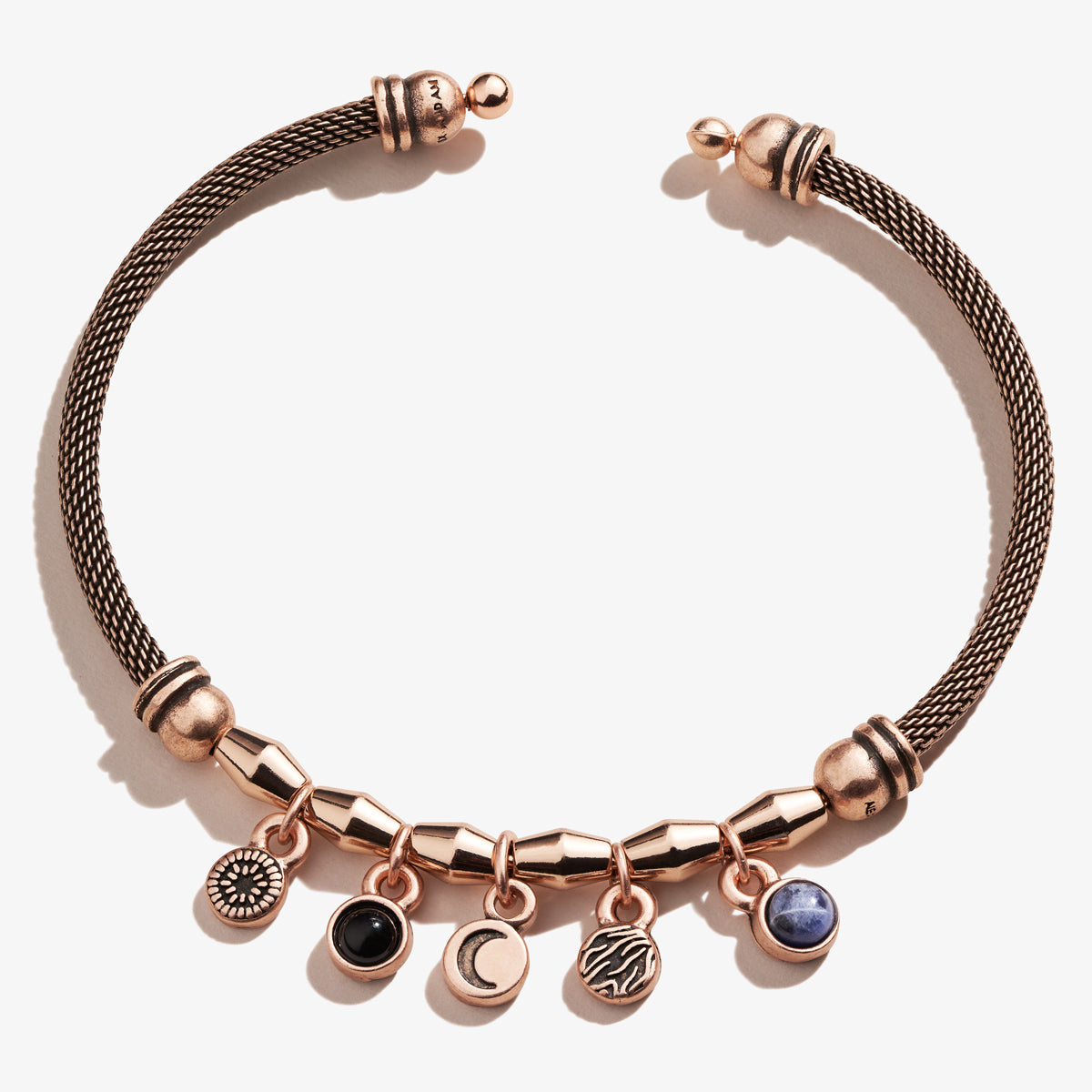 Crescent Moon + Gemstone Multi-Charm Mesh Cuff Bracelet
