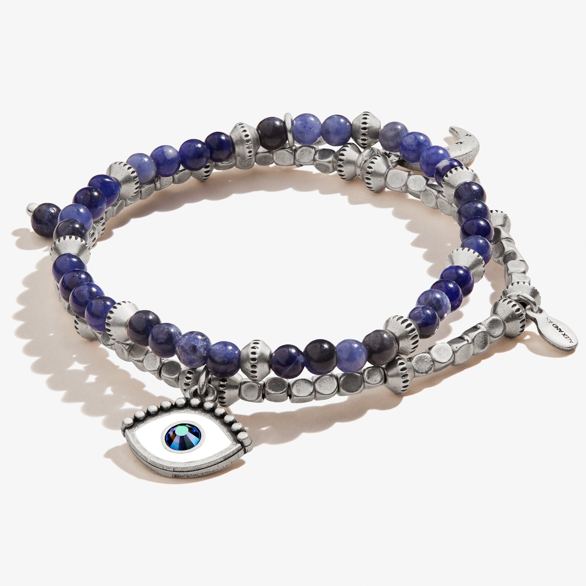 An unblinking emblem of strength, the protective eye symbolizes the divine, watchful gaze that cannot be deceived, seeing only truth. Empowered with peace and protection, you know all is well with the Evil Eye. Sodalite is a stone of objectivity, allowing one to recognize and verbalize true feelings. An enhancer of logical thinking, it helps one to focus on intention and eliminate confusion, providing direction of purpose with lightness of heart.