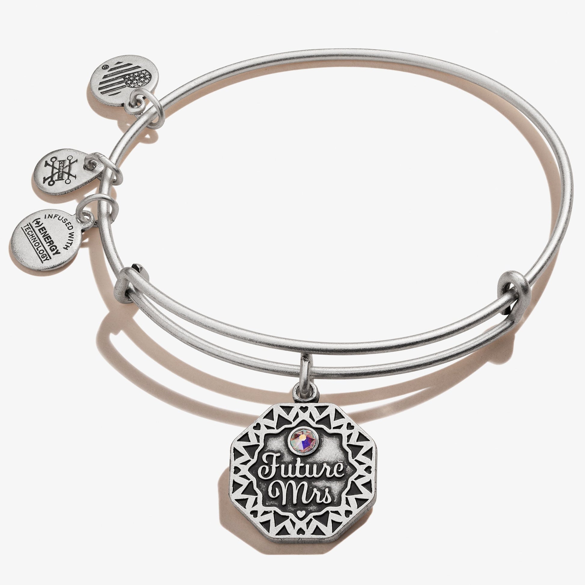 Theres nothing quite like the time leading up to your wedding, when you're busy making plans for the big day, and forming bonds with people that will last the rest of your life. You're taking two families and creating one thats even stronger. Celebrate this special moment in life with this Future Mrs. Expandable Wire Bangle bracelet in RAFAELIAN ROSE GOLD Antique Finish or RAFAELIAN SILVER Finish. This bracelet features a charm adorned with sparkling Swarovski crystals and has the words Future Mrs. inscribed on it. Take in these moments. You'll remember them for the rest of your life.