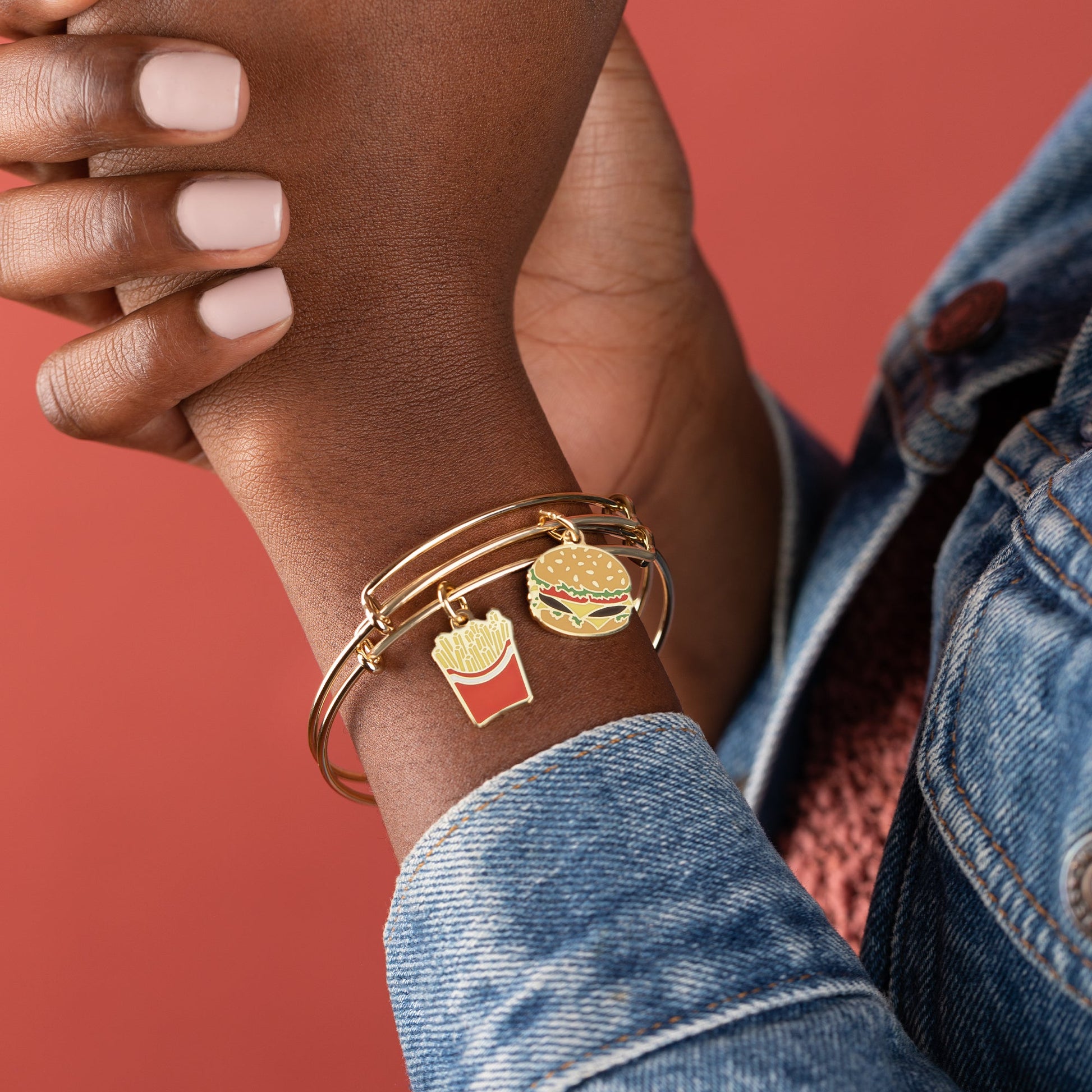 Hamburger + Fry Charm Bangles, Set of 2